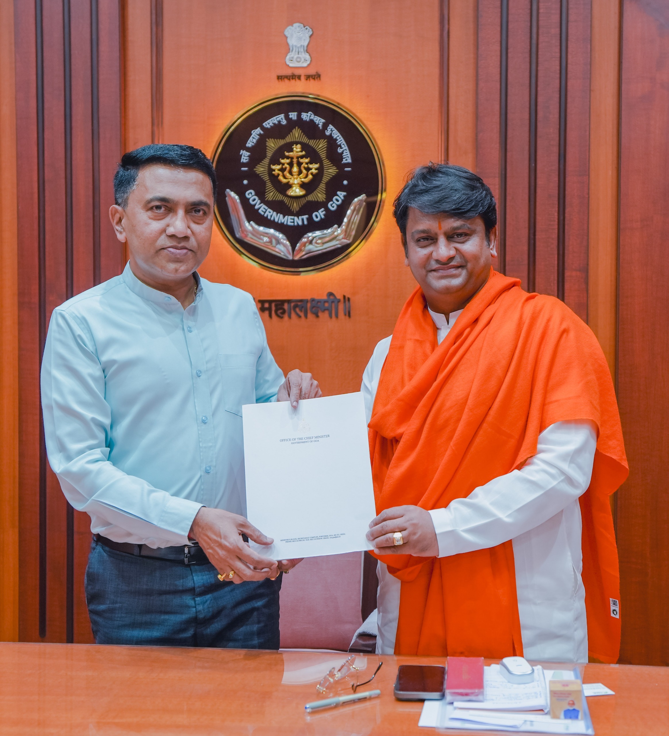 During this warm and fruitful interaction, the Honourable Chief Minister presented Guruji with a copy of the recently released book Temples of Goa, celebrating the rich heritage and architectural splendour of Goa’s temple culture. The two leaders engaged in an in-depth discussion on the historical and cultural significance of temples in Goa and their enduring role in preserving spiritual traditions.
