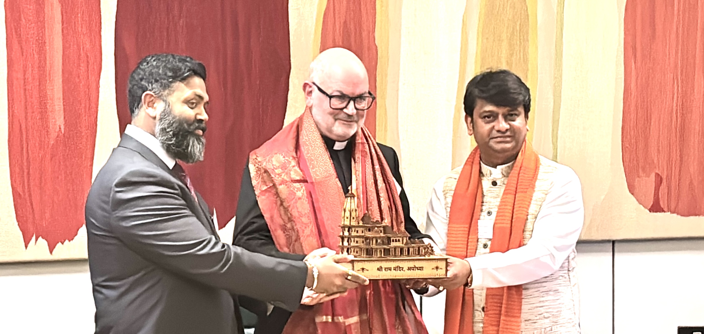 In a symbolic gesture of cultural and spiritual unity, an icon of the sacred Shri Ram Mandir Ayodhya was presented to Rev. Dr Mark Oakley by HH Shri Rajrajeshwar Guruji and Dr Ishan Shivanand. The ceremony was attended by a large number of devotees and representatives from all sectors including medicine, education, technology, professional services, and public policy, further strengthening the spirit of shared purpose.